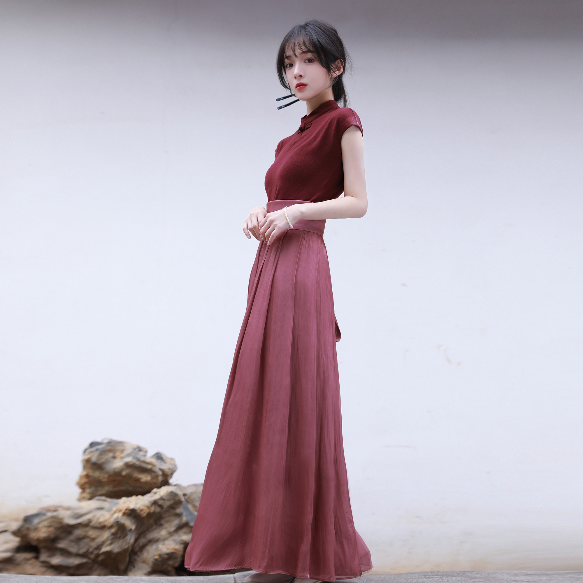 新中式 国风套装 仙气禅意香云纱茶服复古红色长款 连衣裙两件套 女装