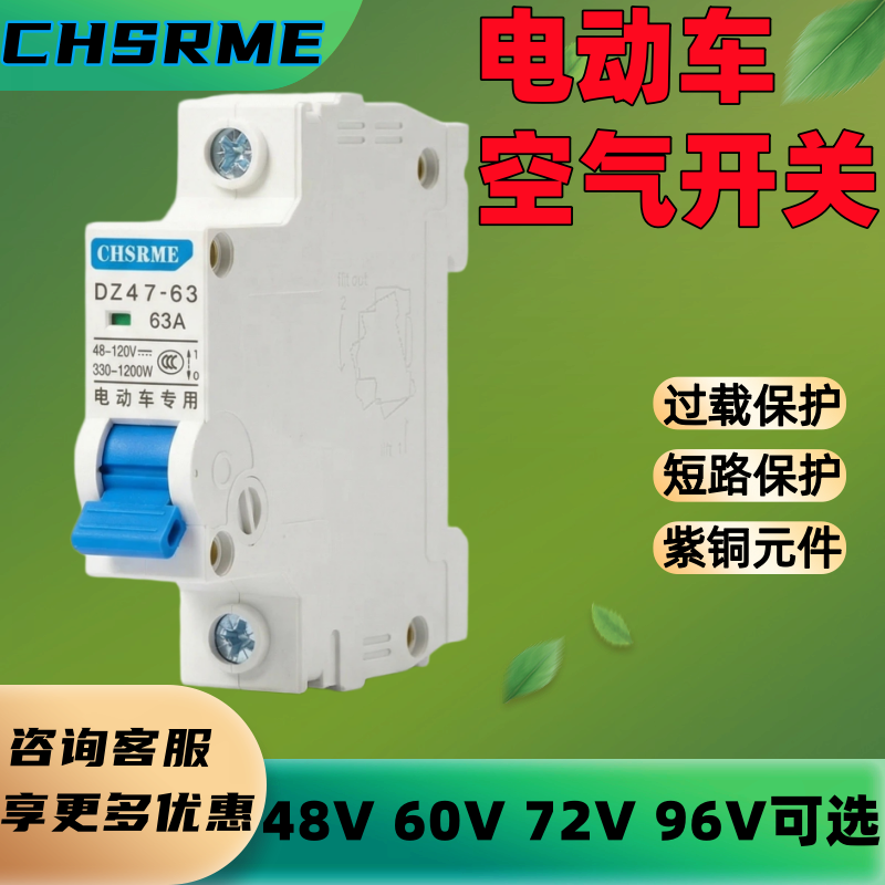 正泰电动车空气开关电闸保护断电器12V48V60V72V84V断路器空开40A
