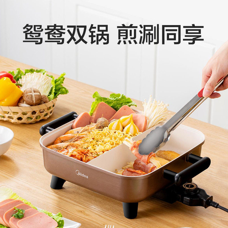 美 电炒菜炒锅电热电锅电煮锅不粘锅 鸳鸯电火锅家用多功能一体式