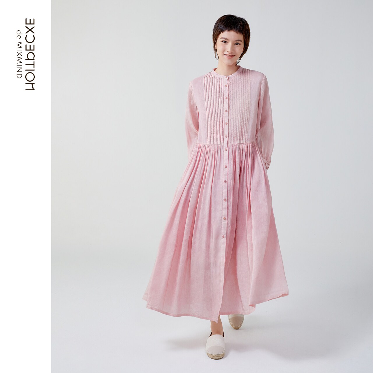 连衣裙植物染亚麻宽松新中式 裙子中长裙 春秋款 EXCEPTION例外女装