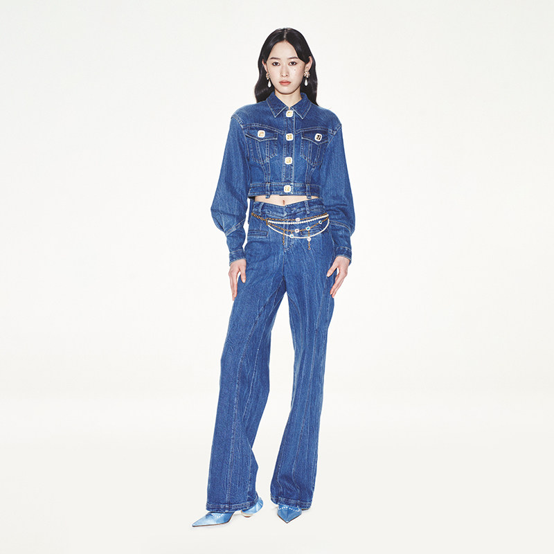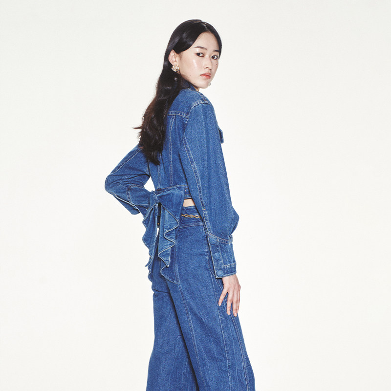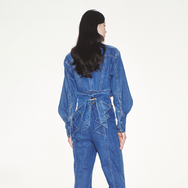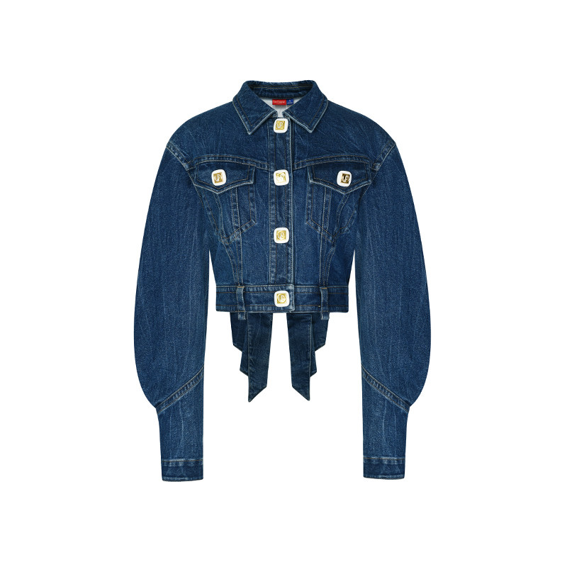 lefame拉飞姆蝴蝶结优雅蓝色牛仔外套复古高级感由