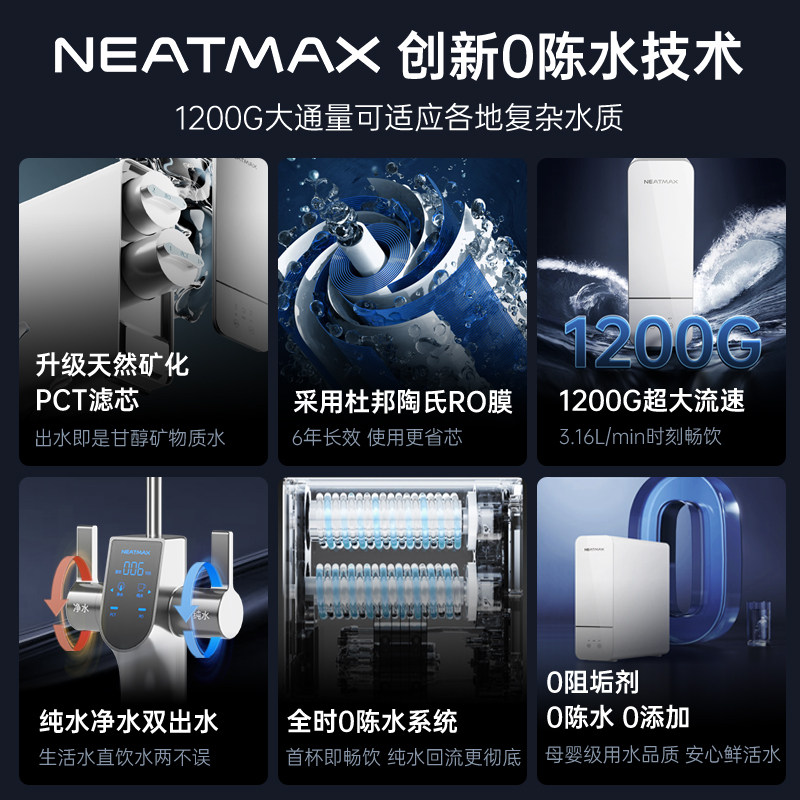 NEATMAX厨下净水器1200G家用陶氏RO反渗透过滤零陈水双出水直饮机