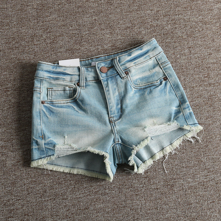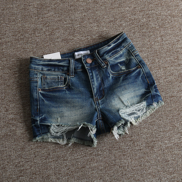 女热裤 提臀低腰毛边牛仔短裤 欧美街头复古水洗磨破修身