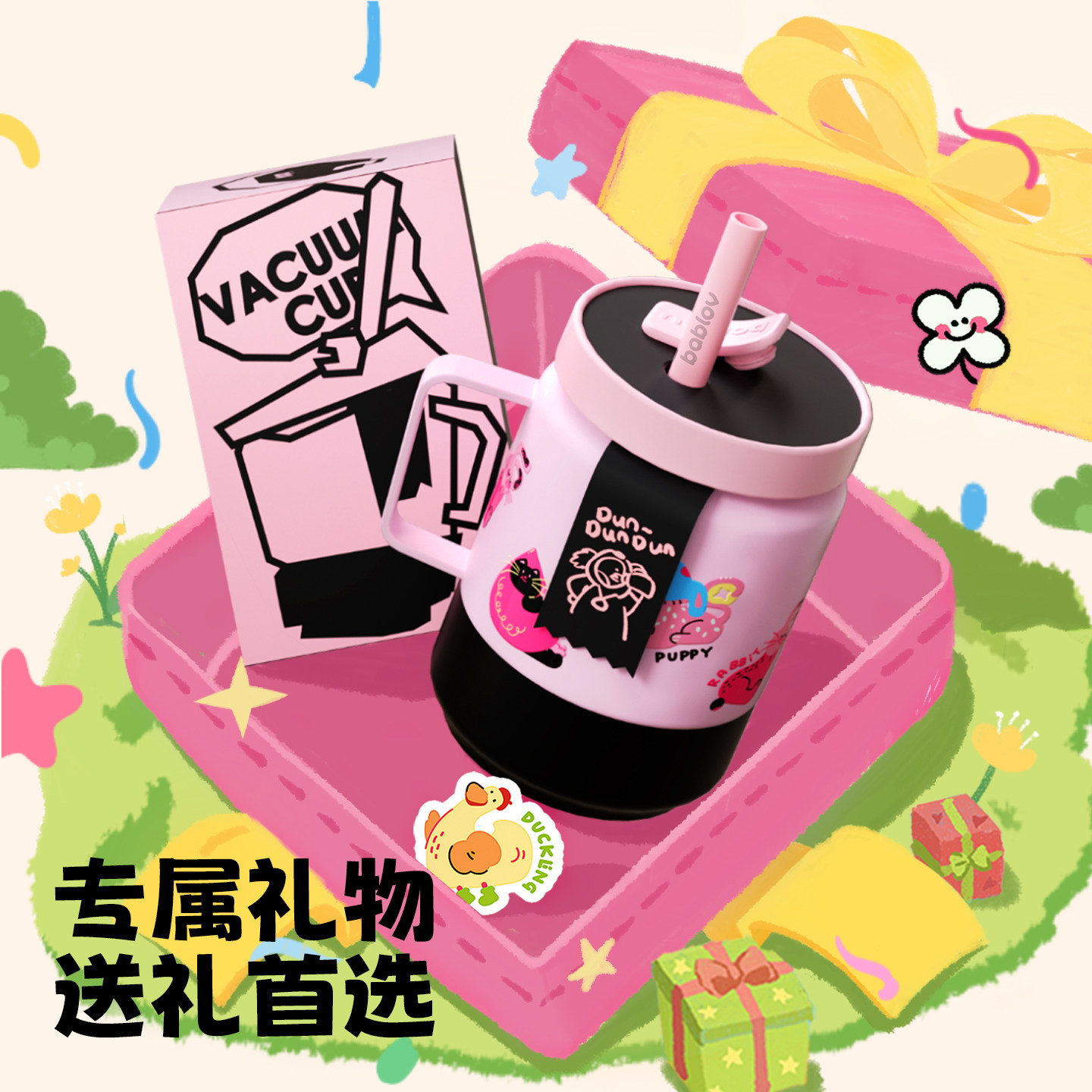 bablov保温杯女生高颜值大容量生日礼物杯子不锈钢咖啡带吸管水杯