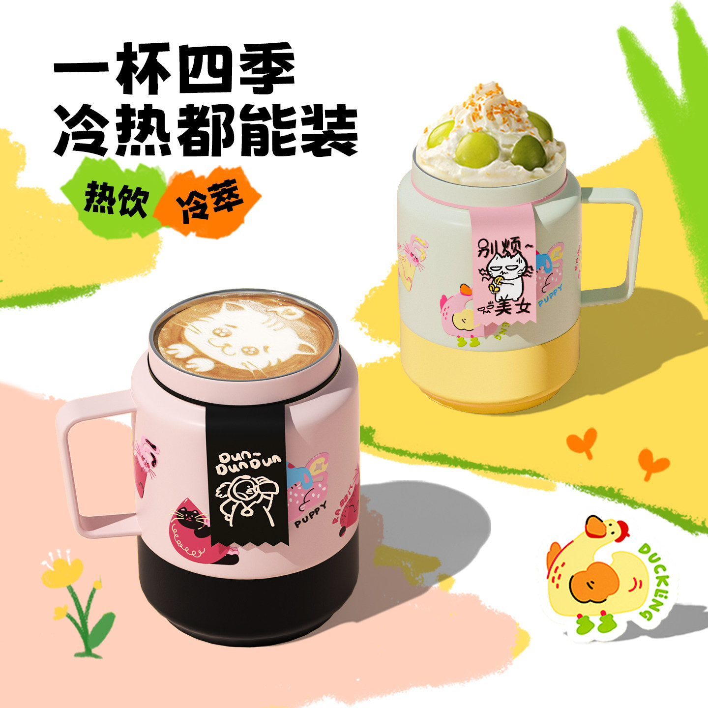 Tagi. 双饮吸管便携手拎不锈钢随行保冷保温杯随行杯 爆米花