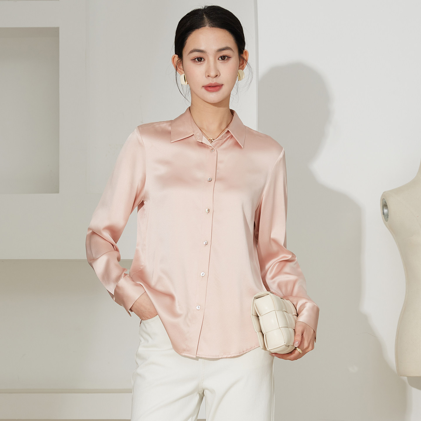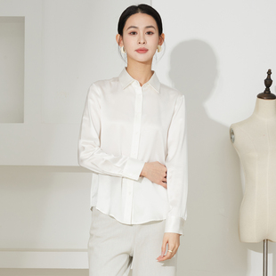 女气质翻领衬衣100%桑蚕丝上衣女装 衬衫 一丝牵30姆米重缎真丝长袖