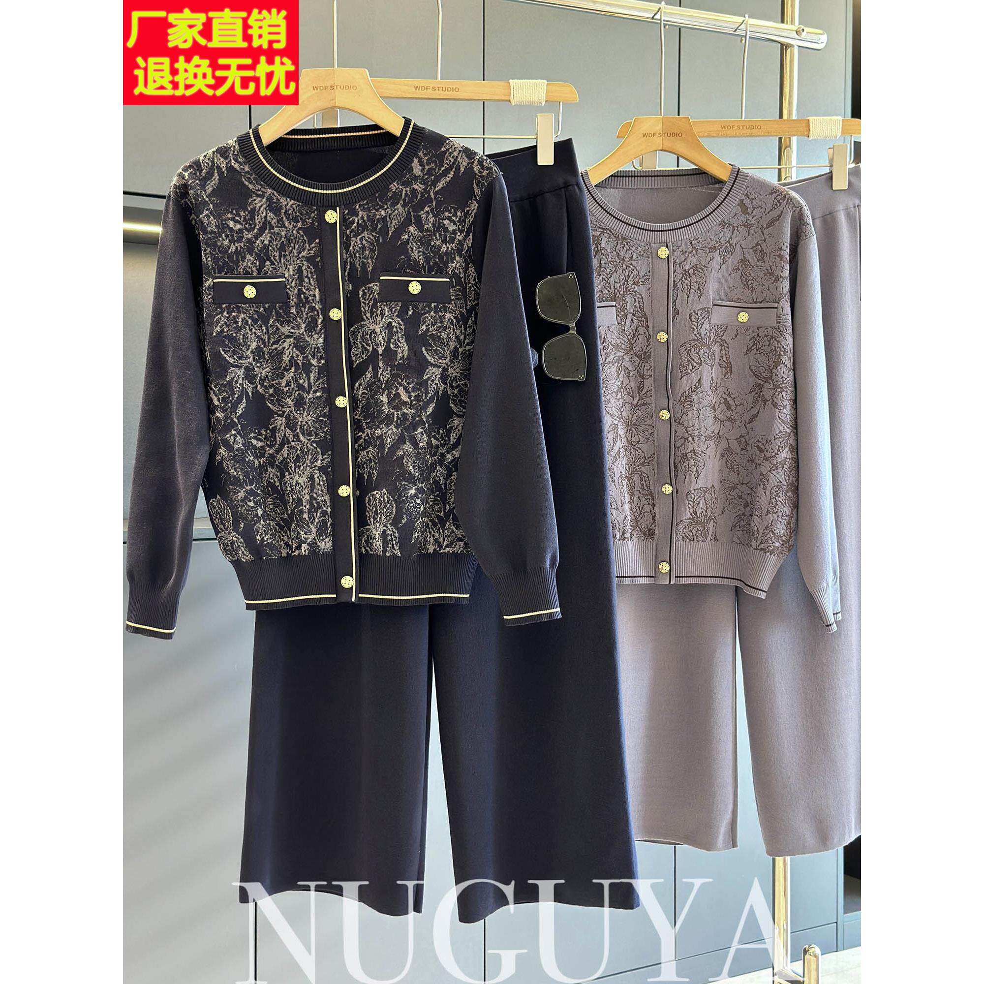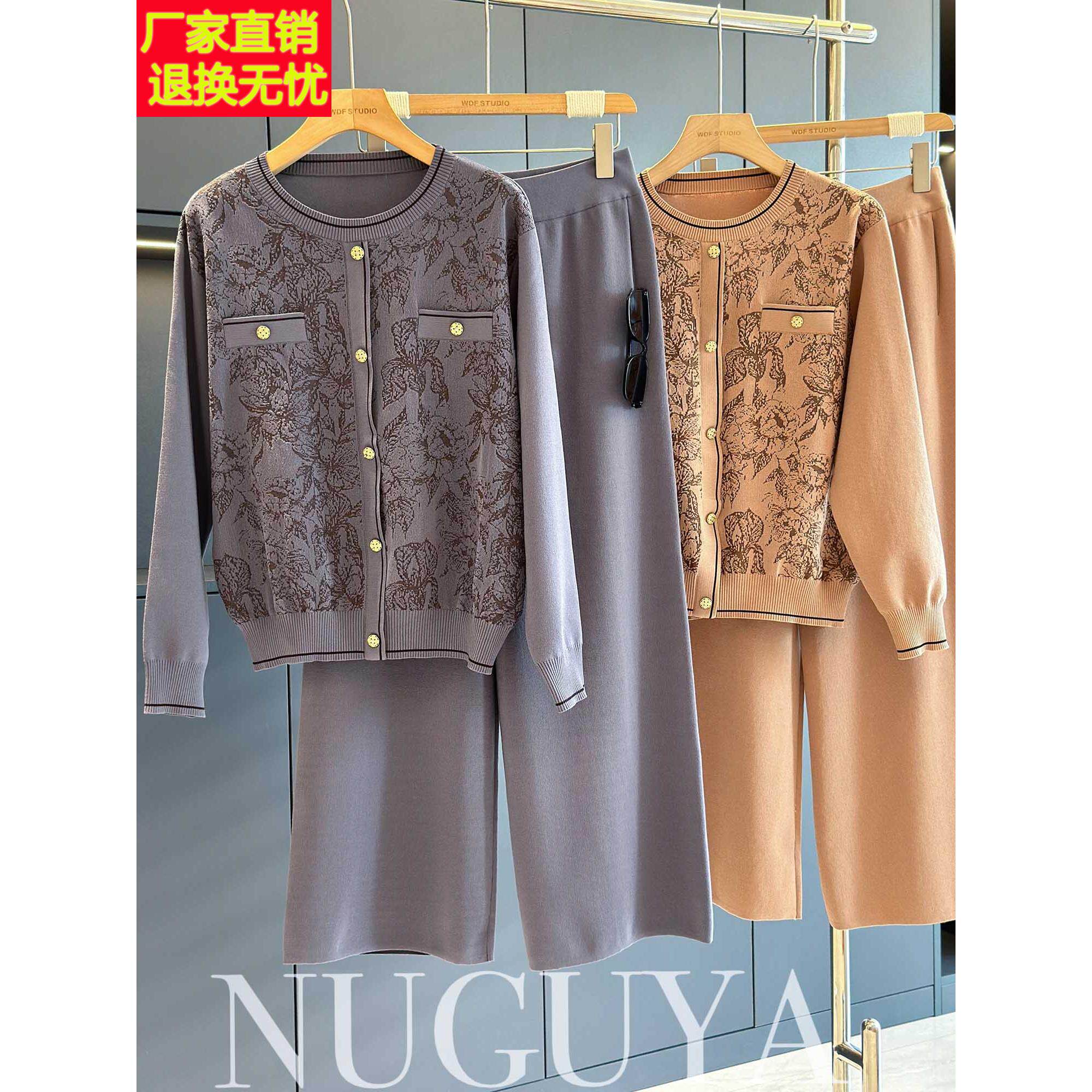新款 时髦洋气妈妈装 针织套装 女秋装 休闲中老年冰丝两件套 气质时尚由