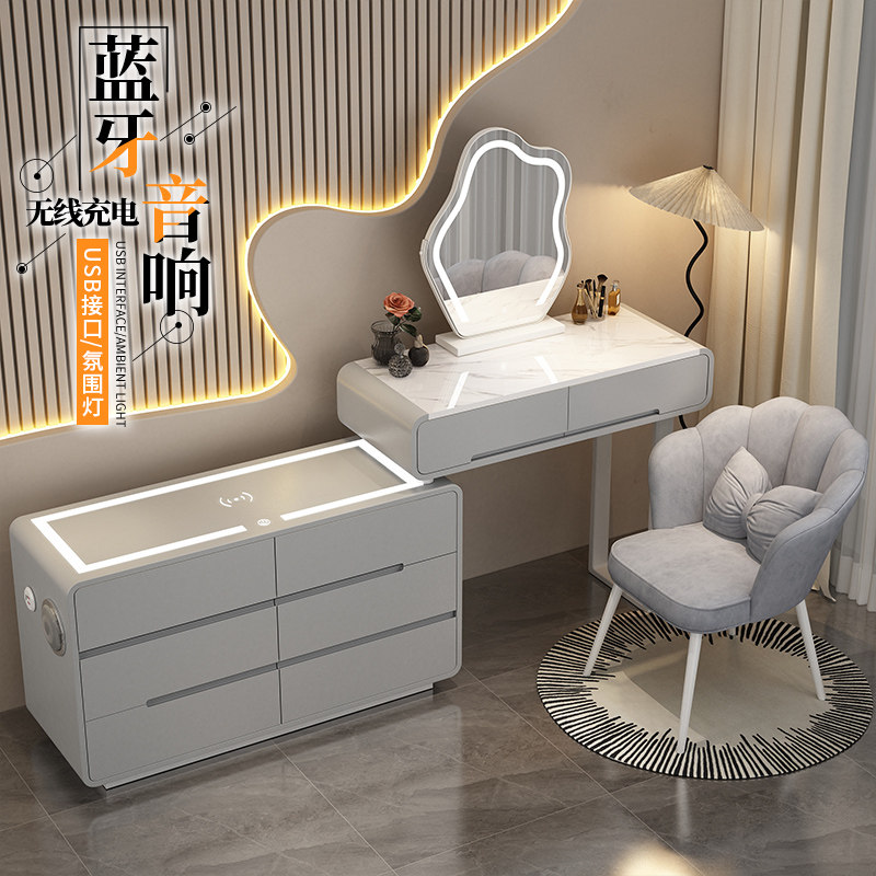卧室现代简约轻奢高级小户型化妆桌收纳柜一体 梳妆台实木岩板新款