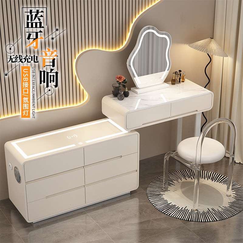 智能梳妆台无线充电轻奢北欧卧室化妆台现代简约收纳柜公主化妆桌