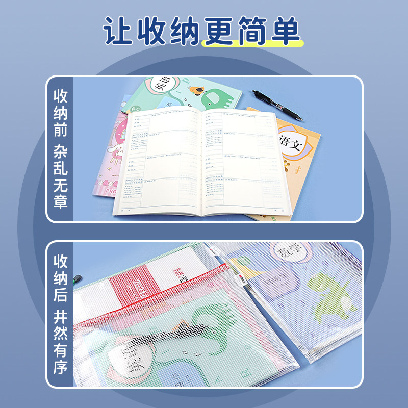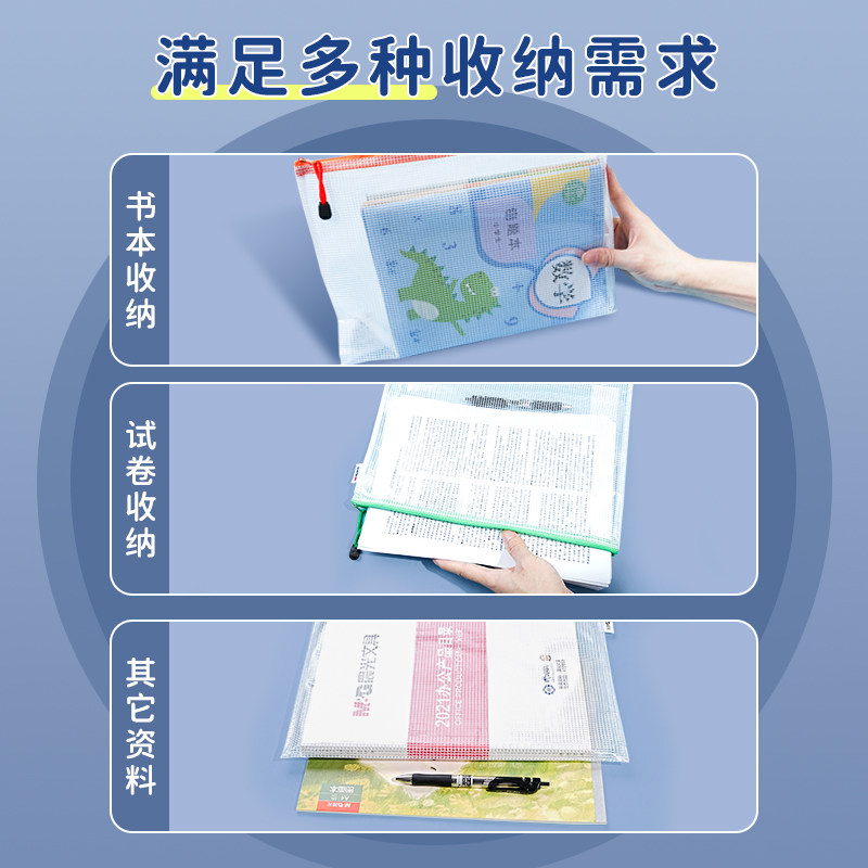 得力文件袋学科袋科目分类袋拉链袋大容量学生双层资料书本学生课本手提拎网纱分科书袋a4试卷收纳袋