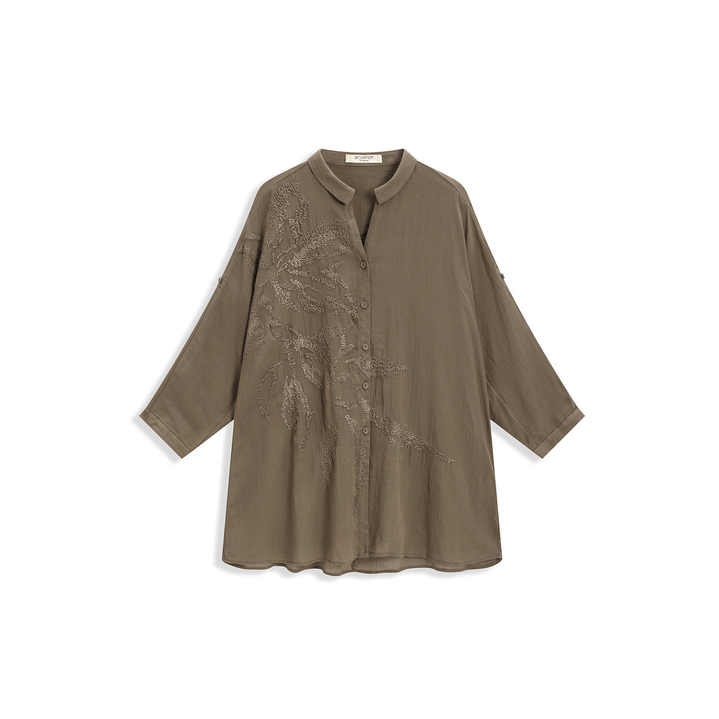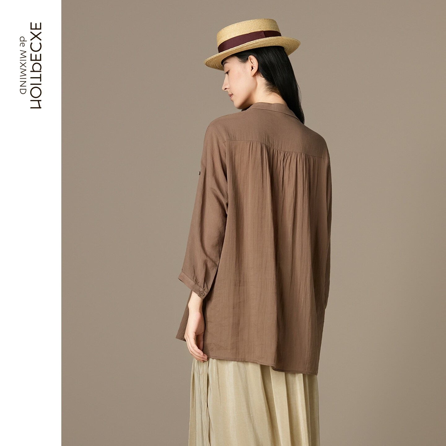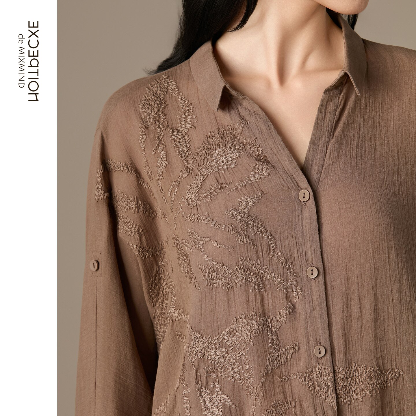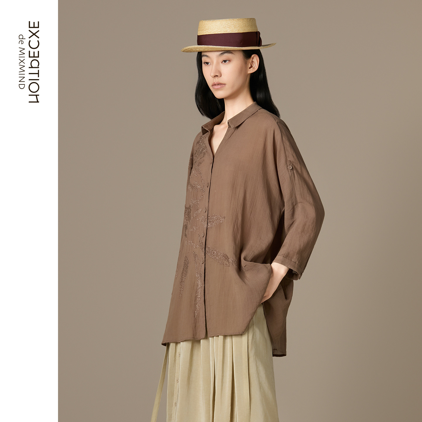 EXCEPTION例外女装 上衣宽松长袖 衬衫 女 苎麻混纺绣花工艺优雅中式由