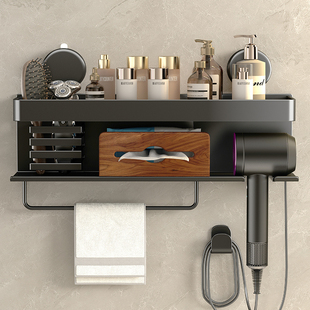 吹风机架洗脸巾收纳架子 吸盘多功能枪灰牙刷置物架卫生间壁挂式由