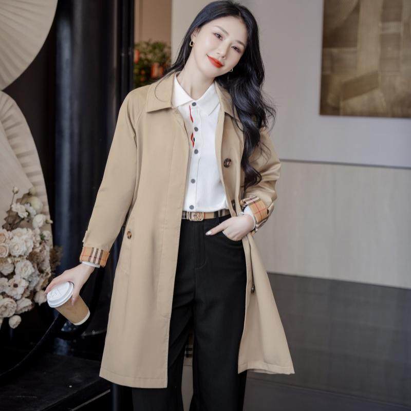 风衣外套女2026春新款 双排扣小个子高级感外套 卡其色短款 范洛经典