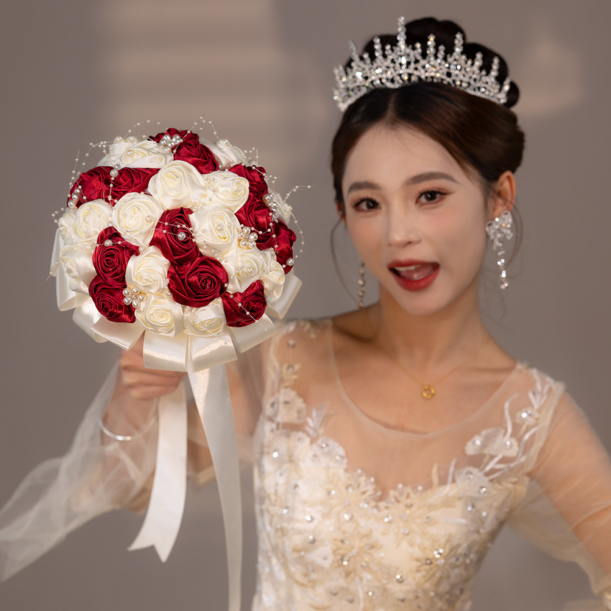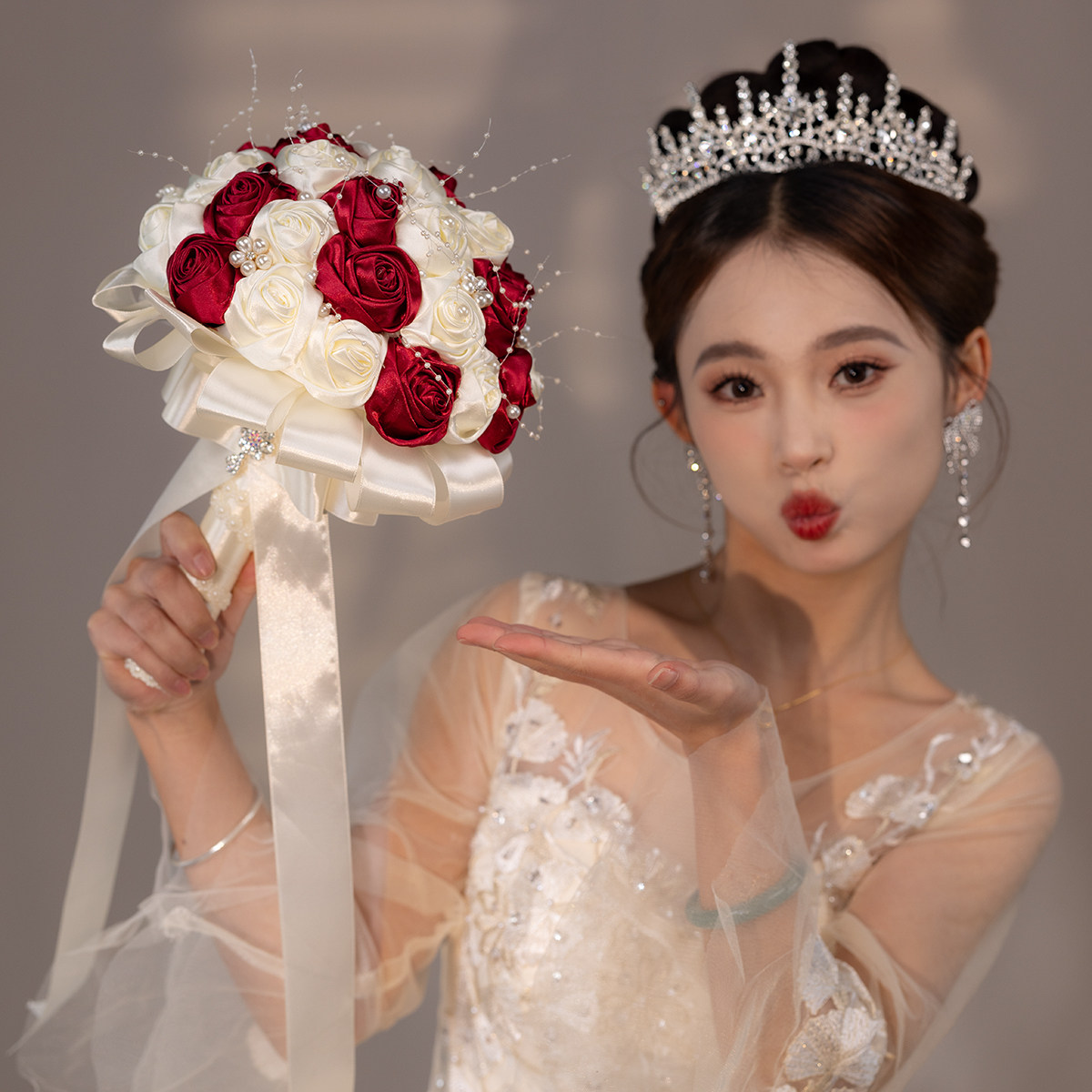 红色玫瑰花手捧花仿真花花束新娘结婚婚纱照假花伴娘婚礼拍照道具