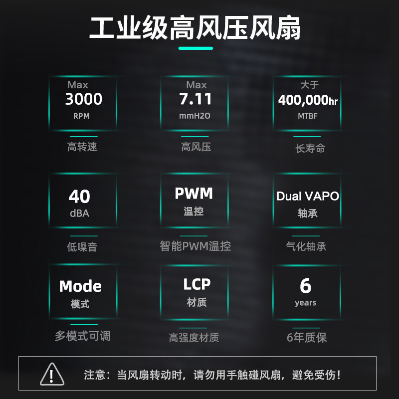 PWM多模式 可调30mm高风压工业级散热风扇 12cm PHANTEKS追风者T30由
