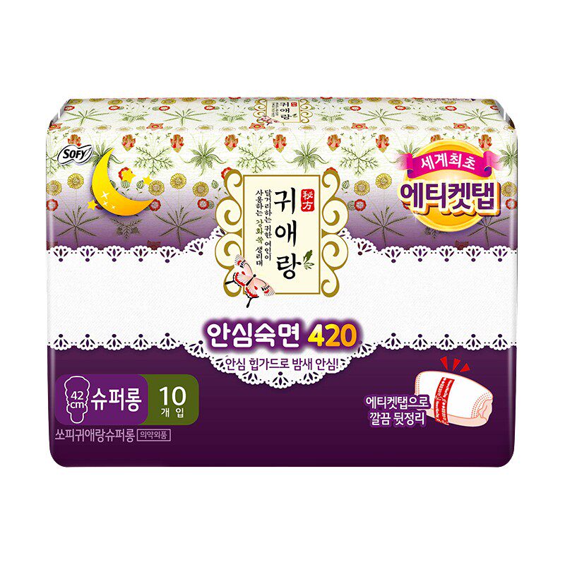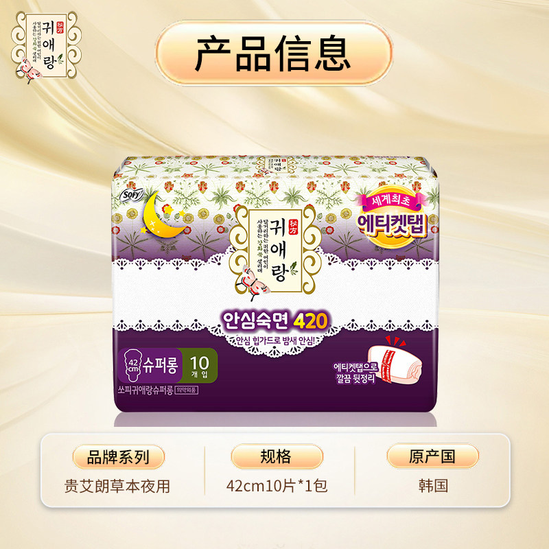 为您提供商品贵艾朗LG韩国进口棉柔亲肤防侧漏姨妈巾草本夜用卫生巾420mm10片的详细介绍,