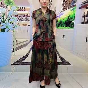 裤 妈妈夏季 子 阔太太两件套上衣 中老年女装 洋气真丝套装 2025新款由