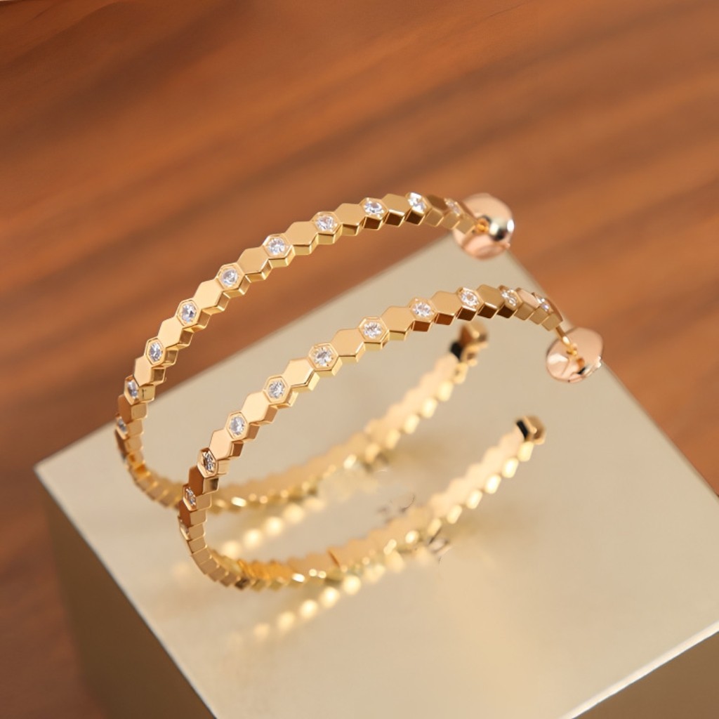 为您提供商品新款 百搭耳环 轻奢欧美气质夸张蜂巢大耳圈18K玫瑰金小众设计时尚的详细介绍,
