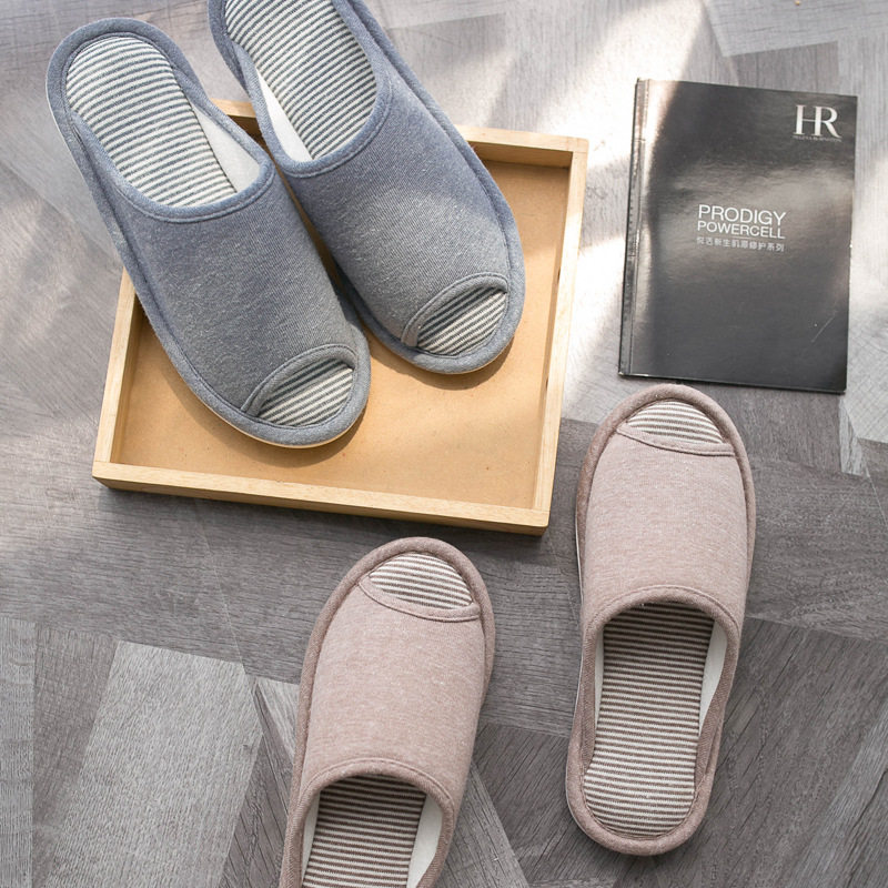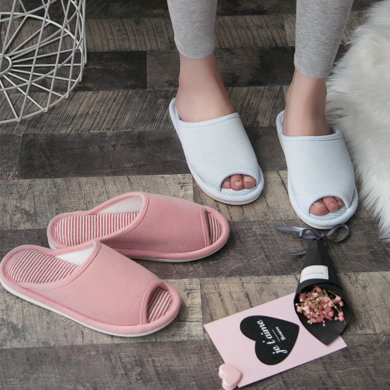 厚底纯色简约情侣日系地板家居棉拖鞋 女 春秋四季 防滑露趾家用拖鞋