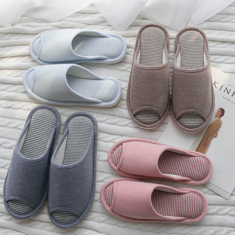 为您提供商品厚底纯色简约情侣日系地板家居棉拖鞋 女 春秋四季 防滑露趾家用拖鞋的详细介绍,