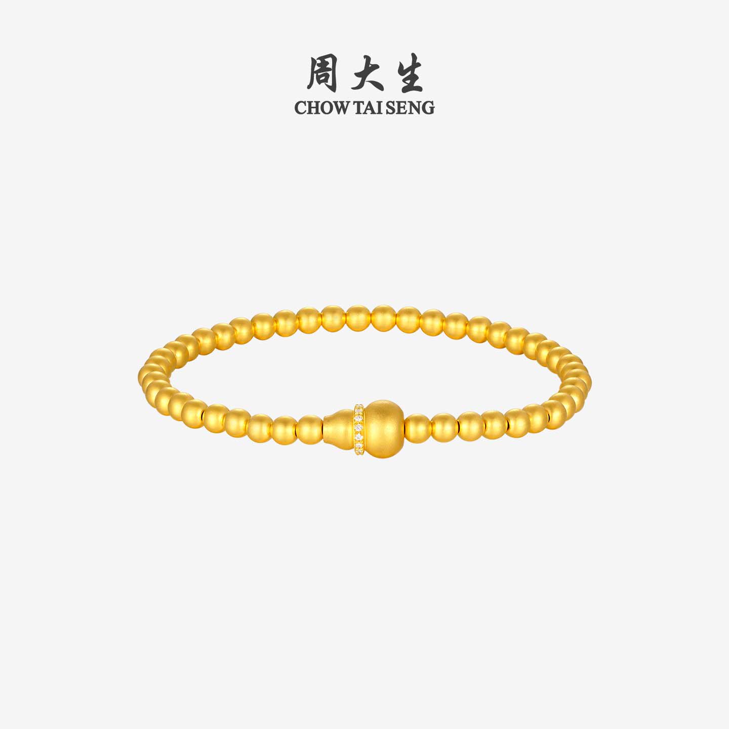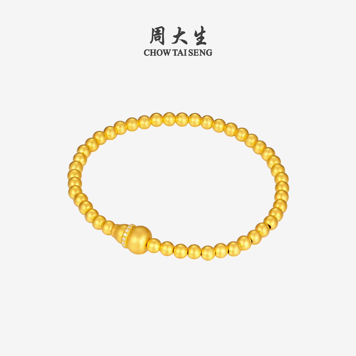 周大生足金镶钻金珠葫芦手串古法国潮手饰手链生日礼物送女友