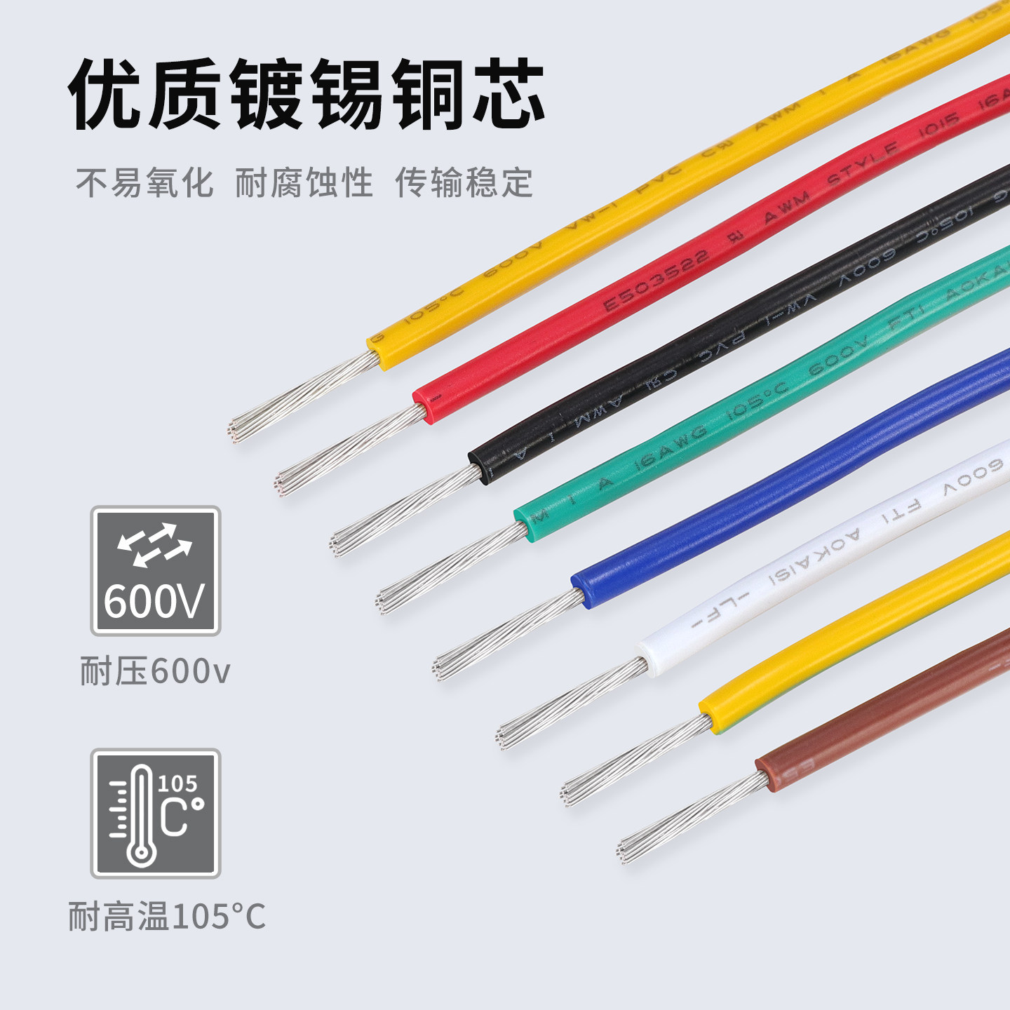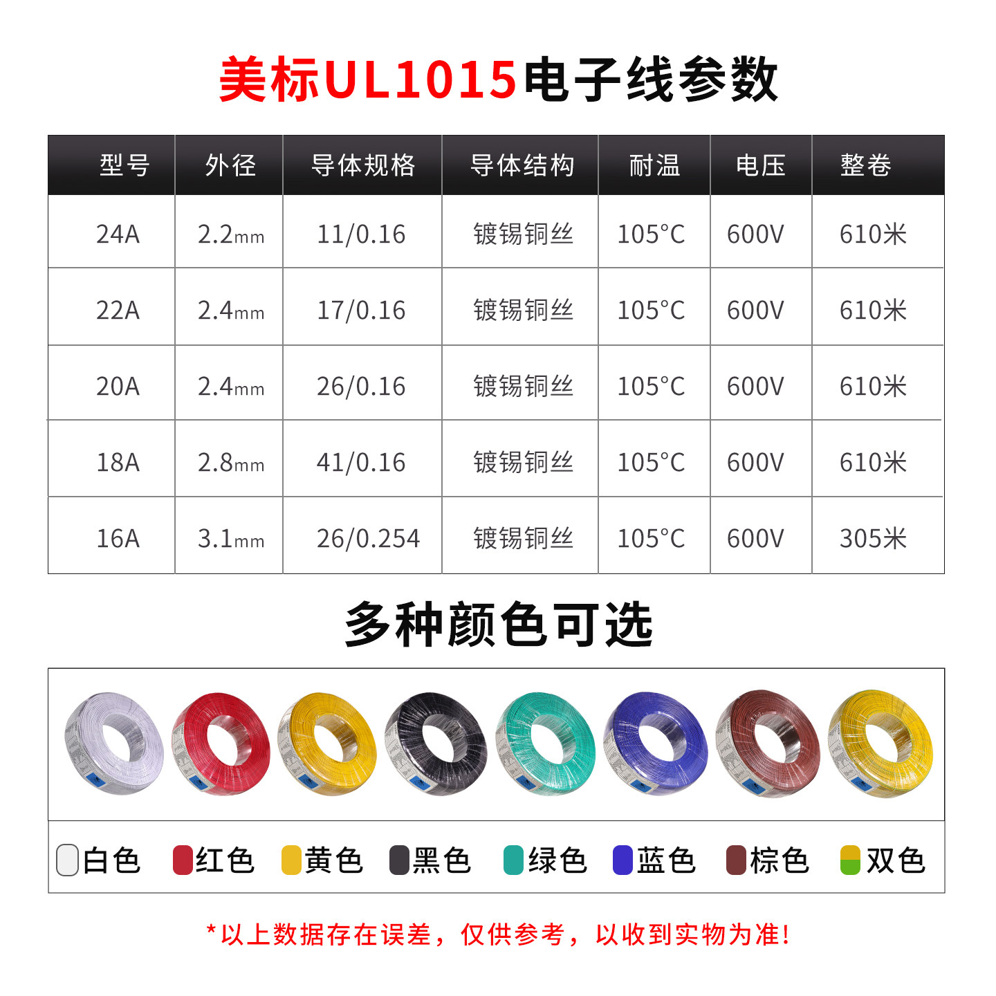 为您提供商品正标UL1015电子高温线105度镀锡铜线美标连接线24 16AWG的详细介绍,