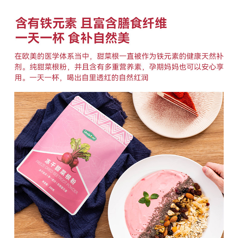 Tom冻干甜菜根粉纯菜头粉无添加糖小红粉补c奶昔铁200g Uncle