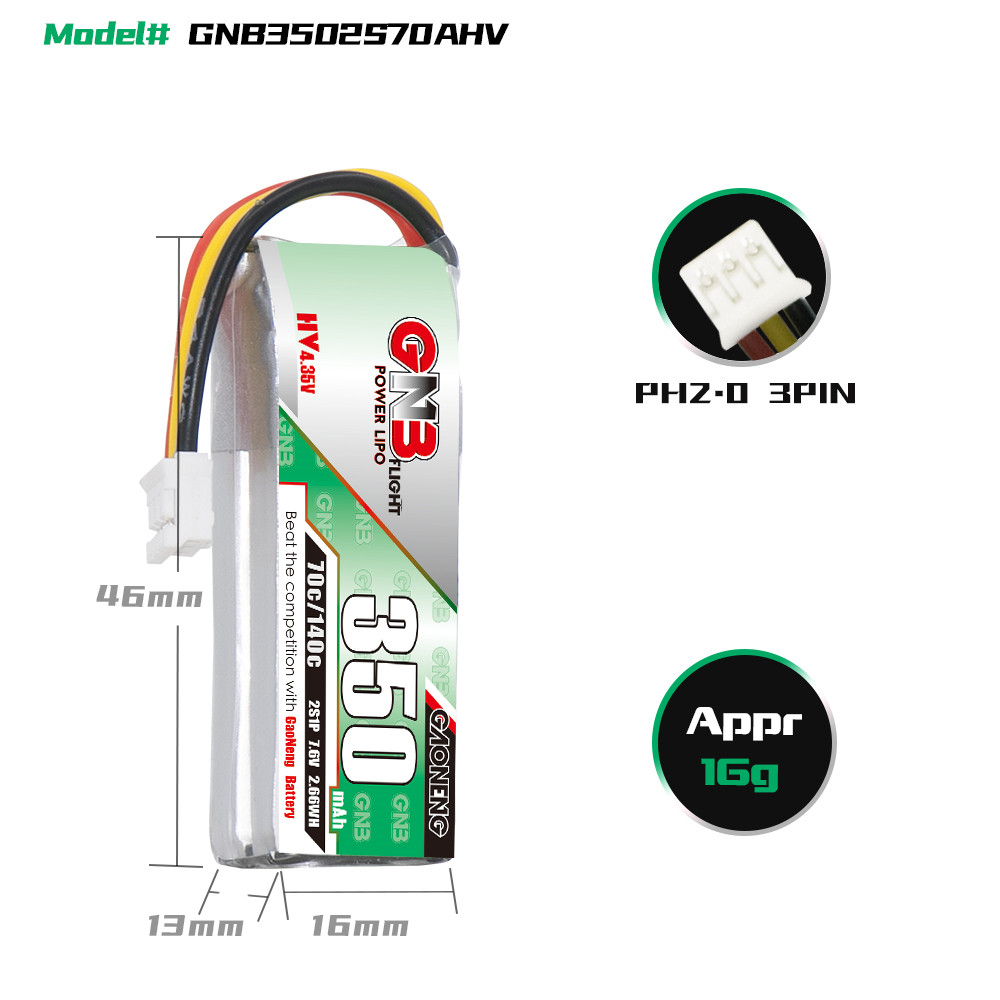 7.6V 350mAh 28后驱漂移蚊车HGD1电池 适用RC1 70C 高能GNB