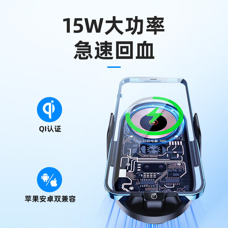 汽车无线充支架自动感应 15W快充导航支架 吸盘式 RAM车载手机支架由