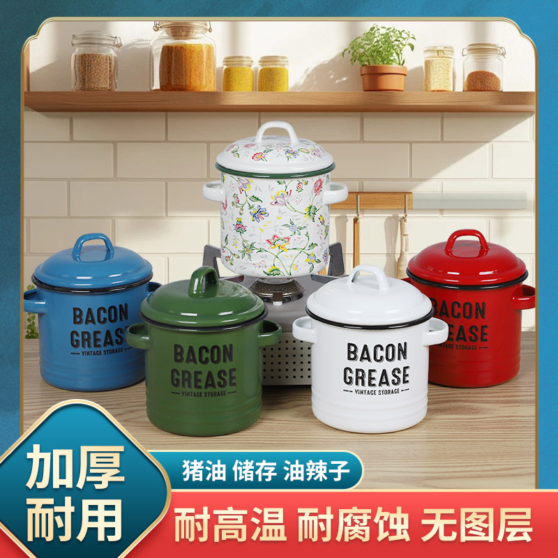 搪瓷猪油罐猪油盆双耳碗食品级瓷碗带盖油泼辣子罐子带盖油碗家用