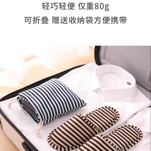 旅行便携棉拖鞋 家用出差可折叠静音防臭布料飞机酒店防滑棉麻拖鞋