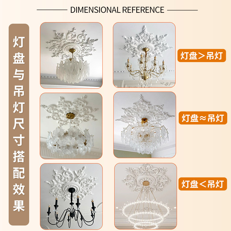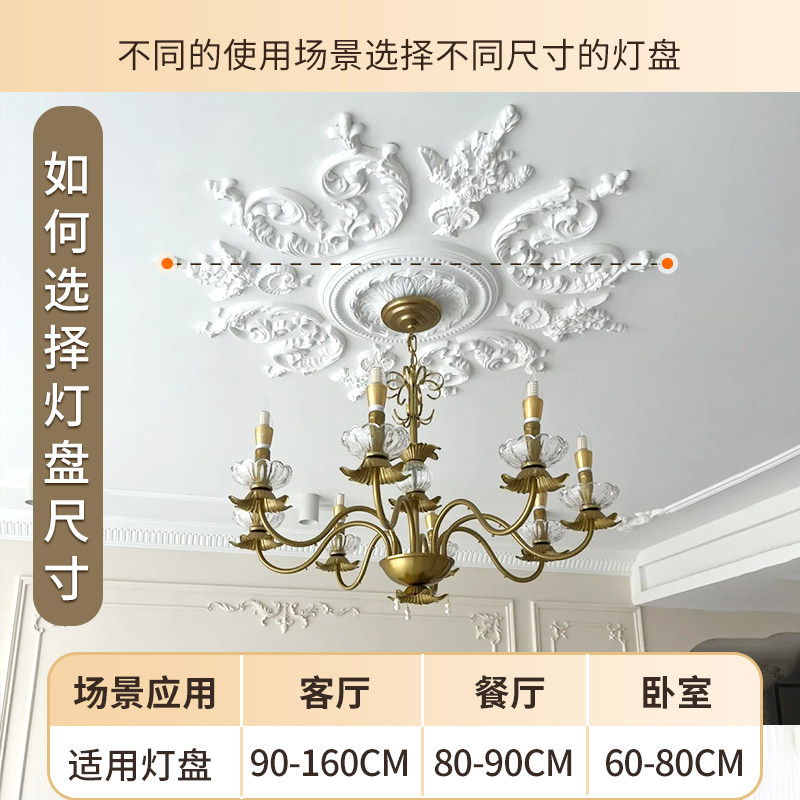 pu灯盘组合拼花圆形石膏灯盘圆盘客厅天花板吊顶灯座线条雕花 法式由