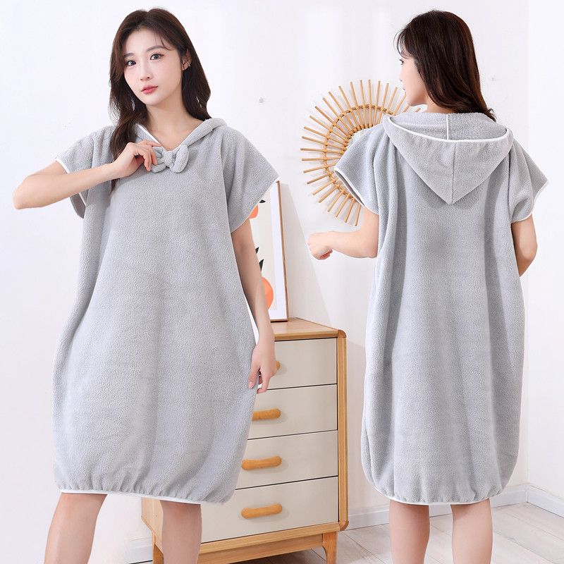 秋冬浴袍可穿浴巾女家用珊瑚绒吸水柔软速干浴裙洗澡睡袍睡衣连帽