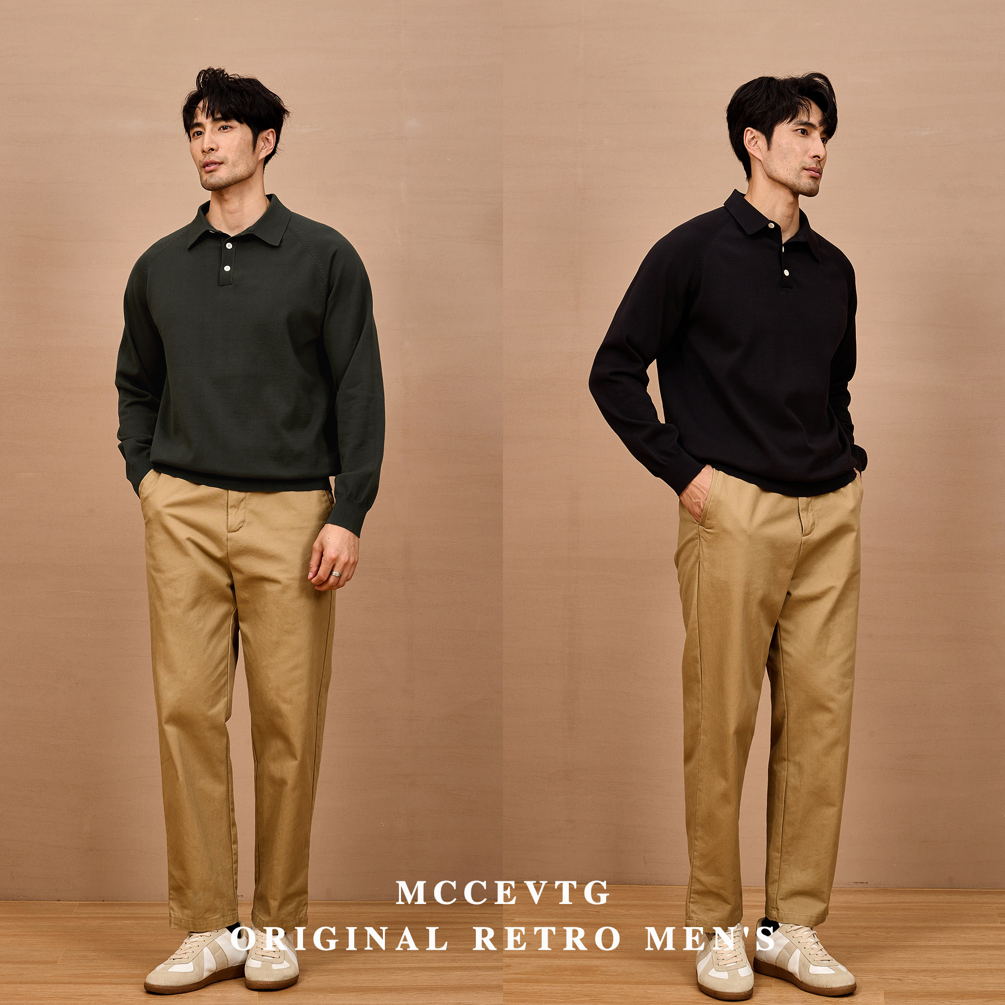 针织t恤阿美咔叽复古美式 MCCEVTG意式 马球polo衫 男长袖 青年春秋季