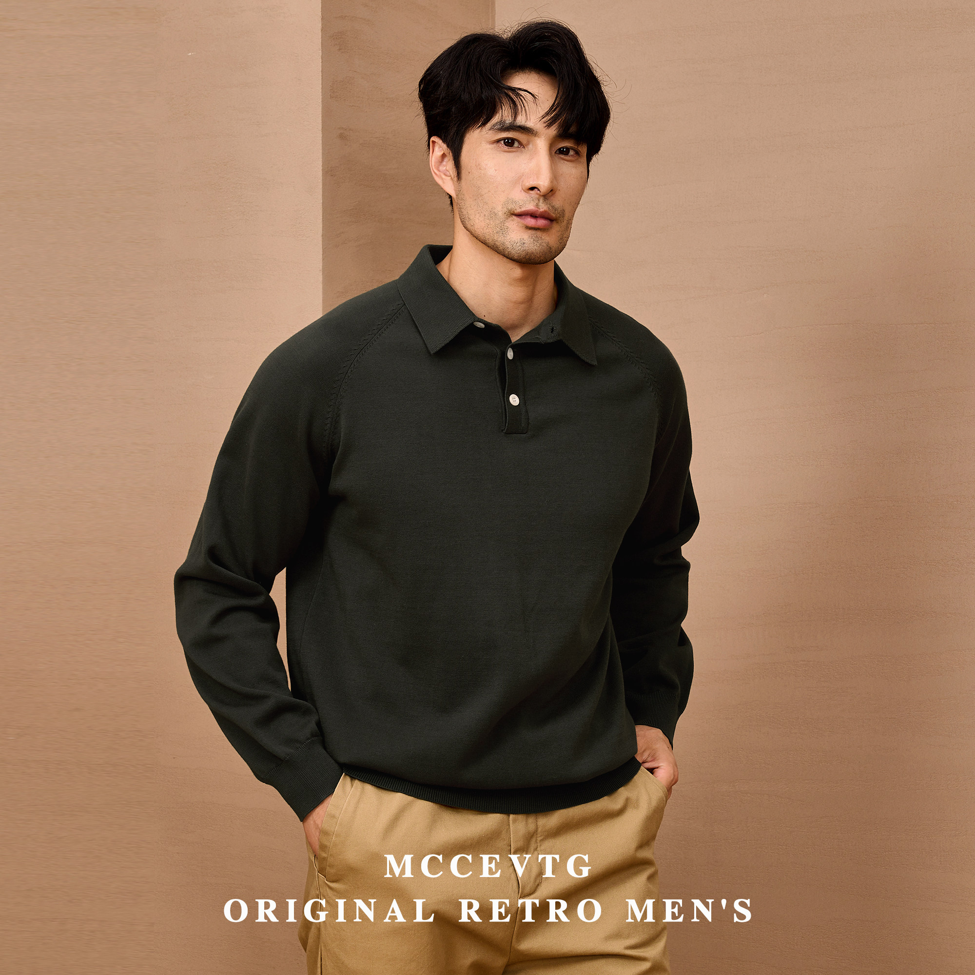 针织t恤阿美咔叽复古美式 MCCEVTG意式 马球polo衫 男长袖 青年春秋季由