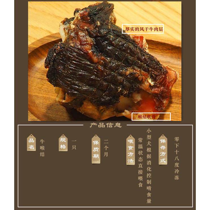 为您提供商品八公鲜粮牛软骨头安全耐咬洁齿补钙风干牛喉结适口性好耐啃度高的详细介绍,