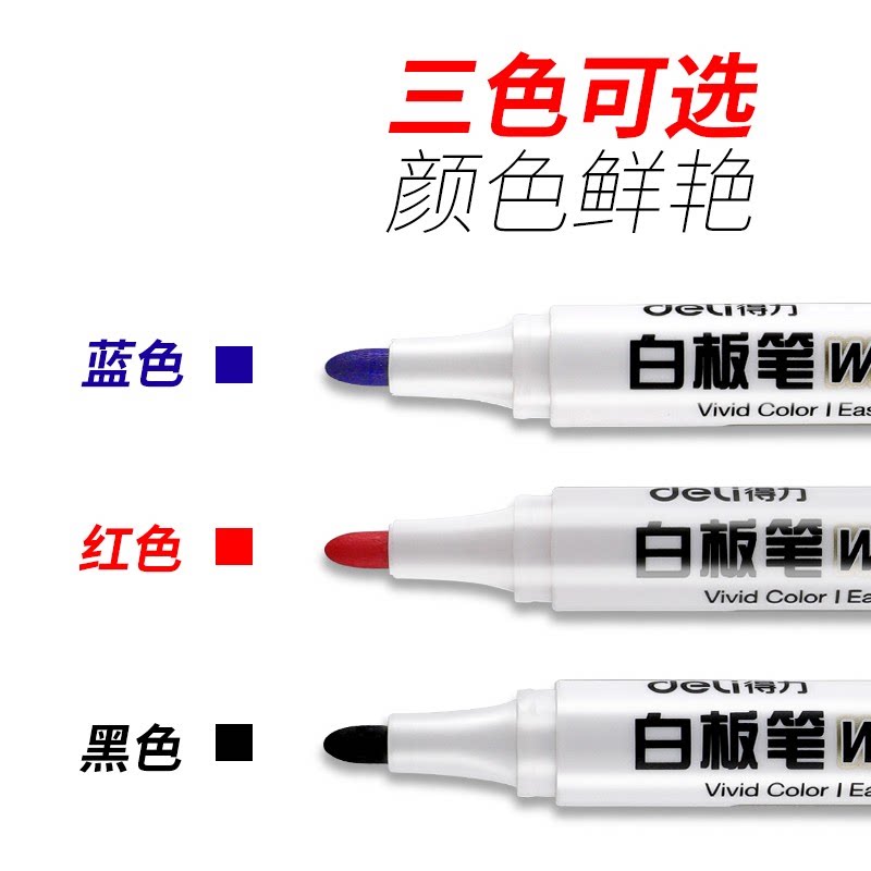 得力可擦白板笔教师用水性黑色儿童无毒彩色红色黑板笔画板写字易擦写粗头大头记号笔可擦除专用细头批发水笔