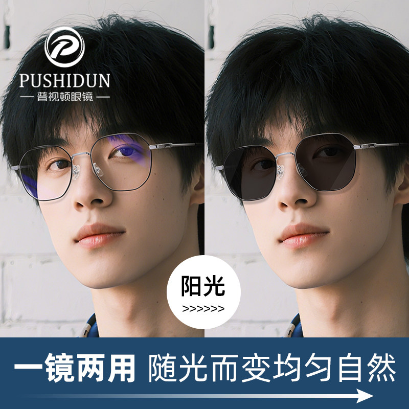 智能感光自动变色近视眼镜男款 护眼平光 防蓝光抗辐射大框显瘦女款由