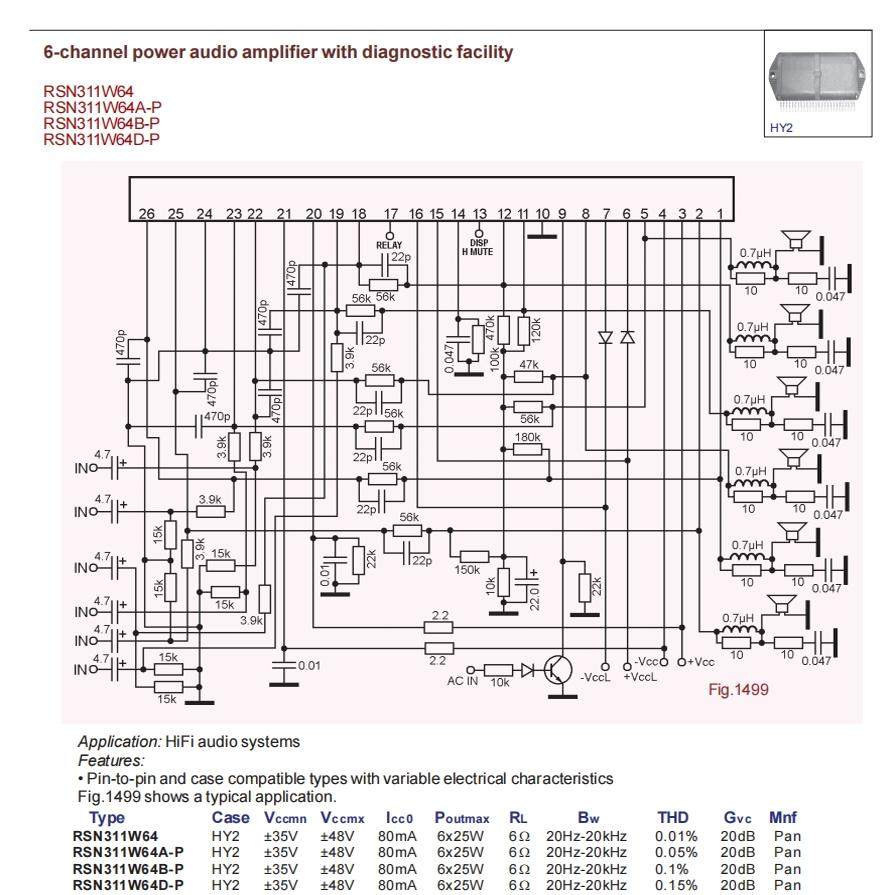 为您提供商品厚膜RSN311W64 300W六声道可组5.1声道 H类HiFi发烧级功放板成品的详细介绍,