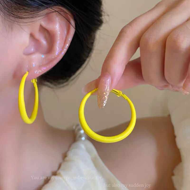 度假风耳圈耳饰 多巴胺糖果黄色耳环女轻奢甜美高级感耳钉2024新款