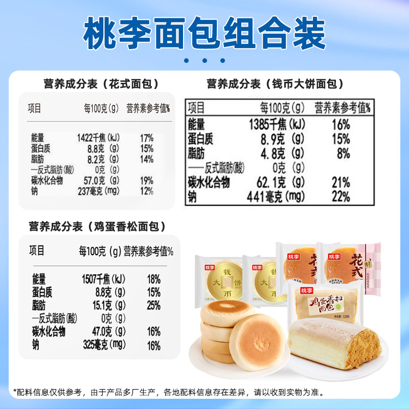 桃李早餐面包组合花式 面包整箱官方旗舰店手撕面包独立小包装由
