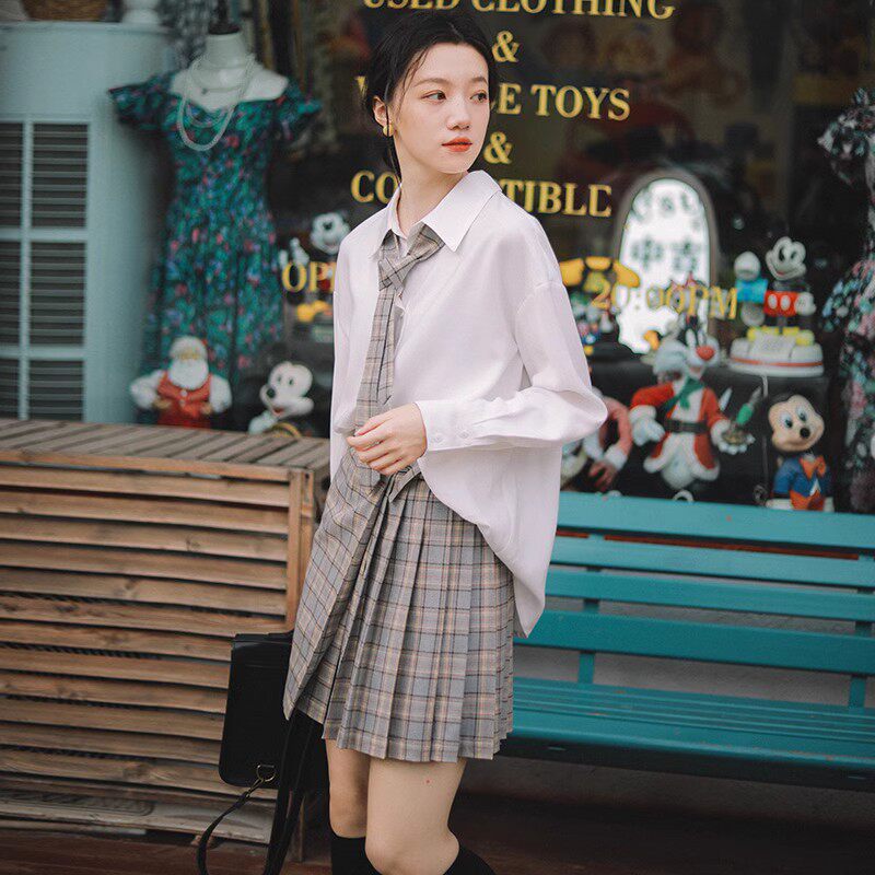 学院风白色长袖 花千猪原创 小澄中衬衫 日式 百搭上衣 jk制服内搭款