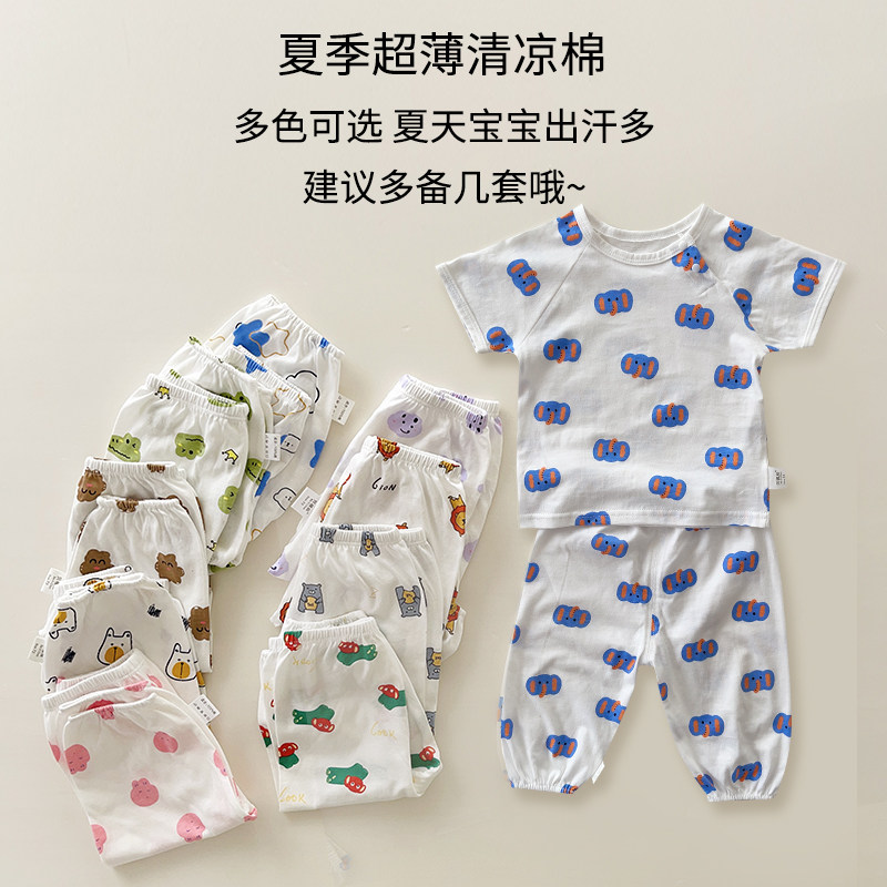 夏装 宝宝夏季 衣服一岁幼儿分体夏天两件套 婴儿短袖 套装 薄款 防蚊裤