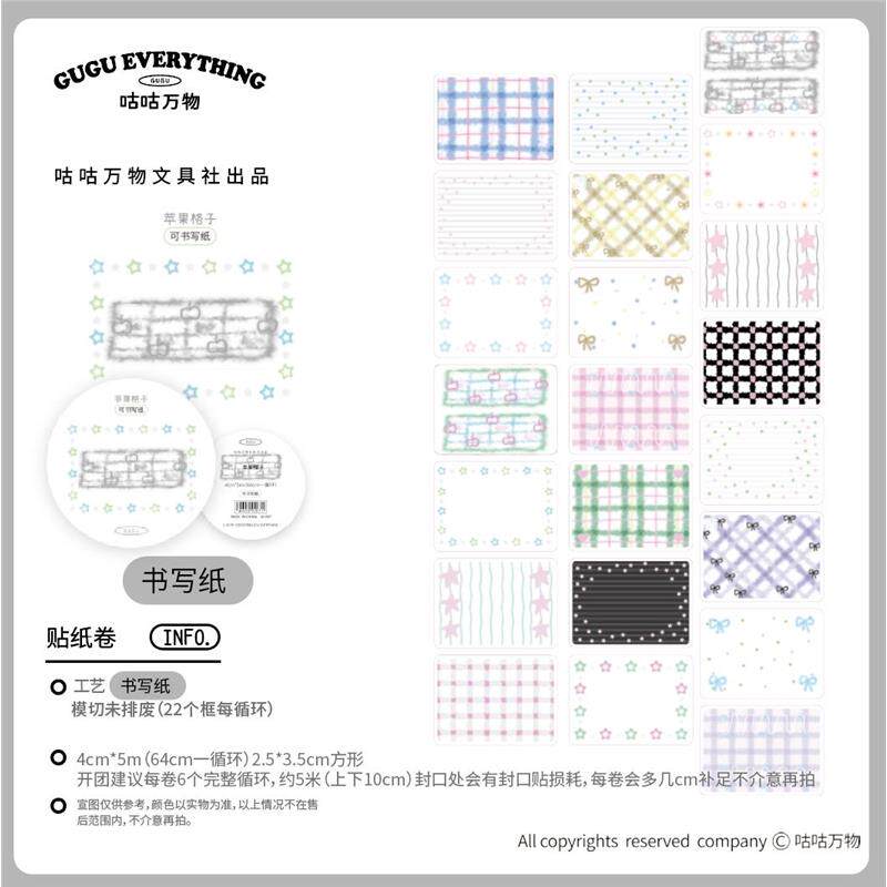 苹果格子咕咕万物分装 饰胶带 简约和纸胶带基础格纹diy手账装