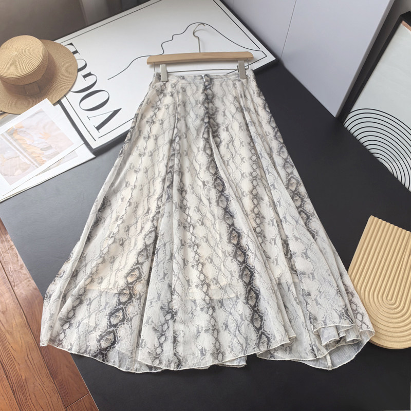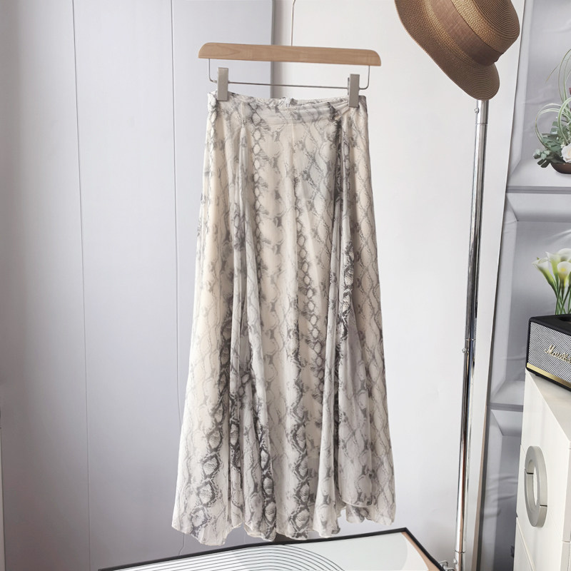 断货王 度假风飘逸蛇纹印花大摆伞裙不规则A字半身裙长裙女夏 法式