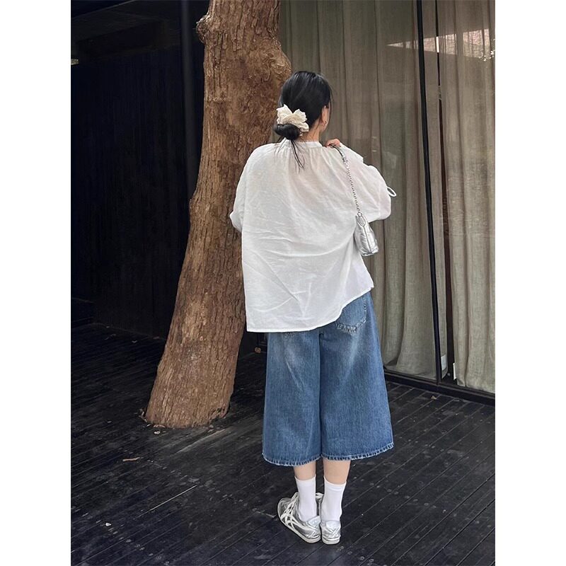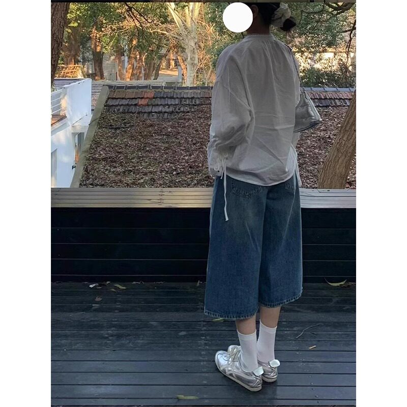 7分中裤 复古蓝七分牛仔裤 女2026夏季 新款 子 宽松直筒阔腿梧桐短裤由