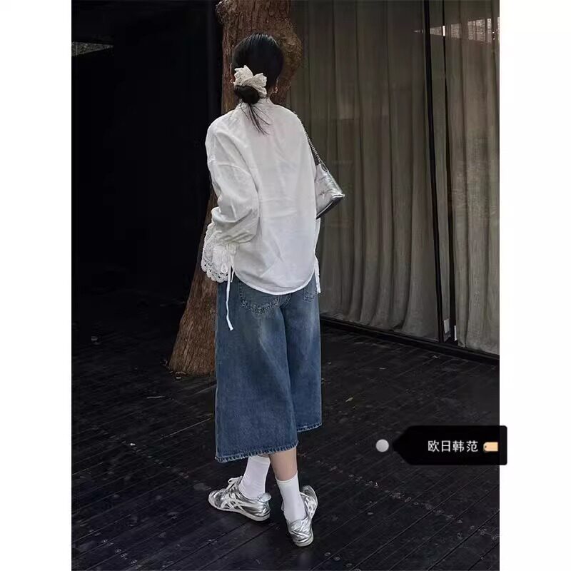 为您提供商品7分中裤 复古蓝七分牛仔裤 女2026夏季 新款 子 宽松直筒阔腿梧桐短裤的详细介绍,