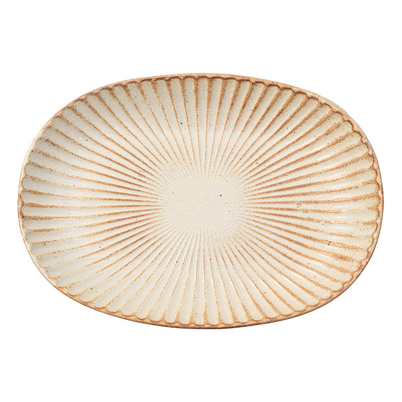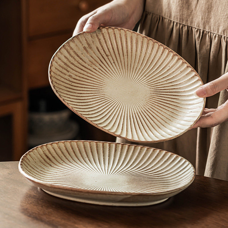 精致轻奢家用菜盘复古高颜值甜品盘粗陶盘子水果沙拉盘 椭圆盘日式