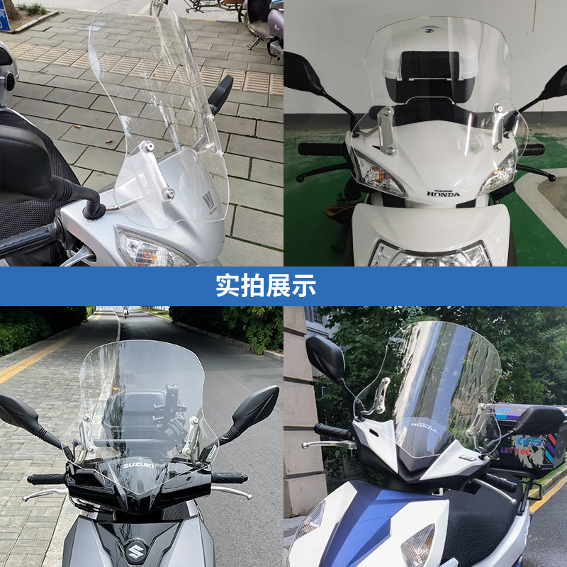 摩托车通用改装 加高风挡高清透亮前挡风玻璃小风挡 小挡风玻璃加装