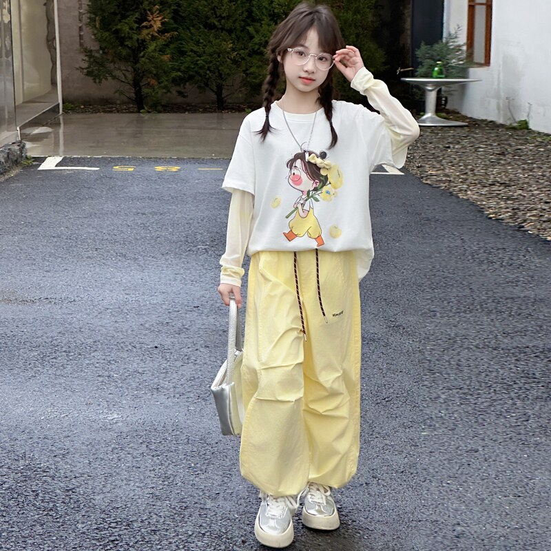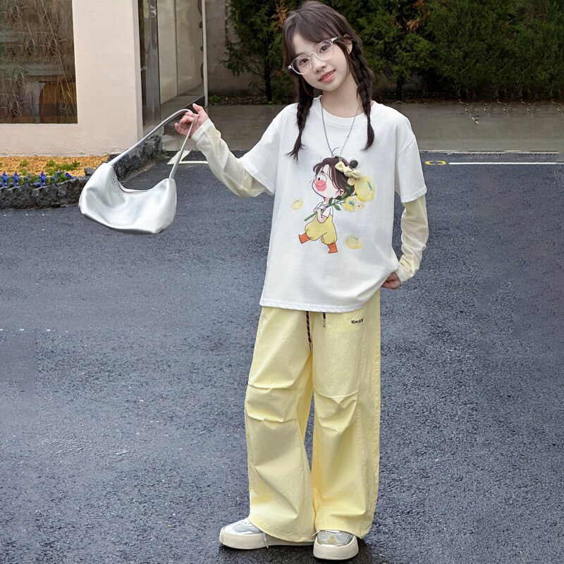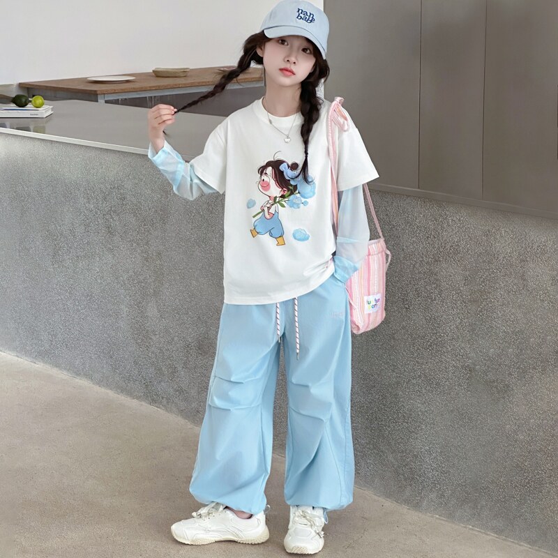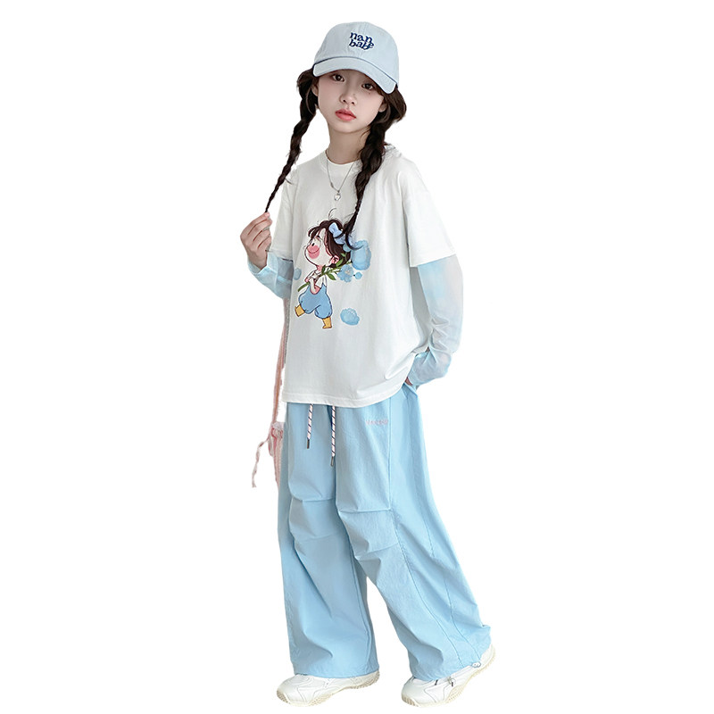洋气时髦儿童夏季 2026新款 夏薄款 两件套中大童 工装 裤 短袖 女童套装由